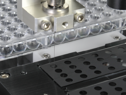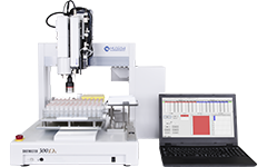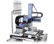 This is the process of applying a small amount of liquid samples accurately to a specific substrate (such as a slide glass or a microplate). It is used in various scenes such as pharmacological screening, antibody testing, and DNA microarrays.