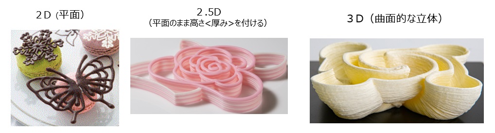 With a 3D food printer, even if you have only the technology of discharge or the technology of motion, it is not possible to stably make the desired shape.