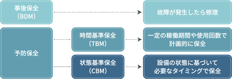 Evolution of equipment maintenance: post-maintenance (BDM), time-based maintenance (TBM), and condition-based maintenance (CBM)