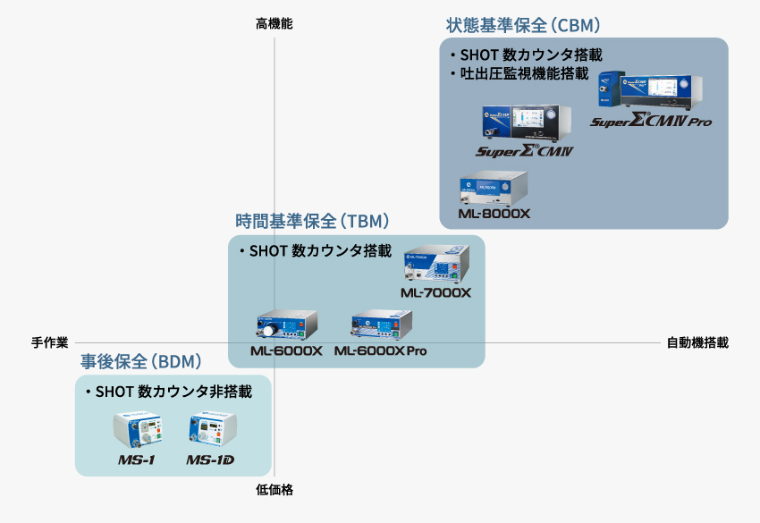 Time-based maintenance is a method of performing regular maintenance based on a certain operating period and number of times of use. Planned maintenance is possible, but in fact, parts may be replaced without problems. In the past, the total number of SHOTs in Dispenser has been counted as a controller and used as a guide for replacing consumables.
