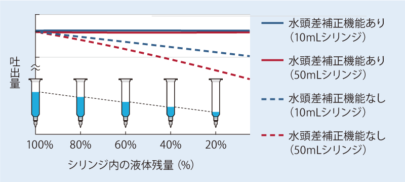 The water head differential automatic correction function always maintains a constant discharge volume and allows for high-precision application.
